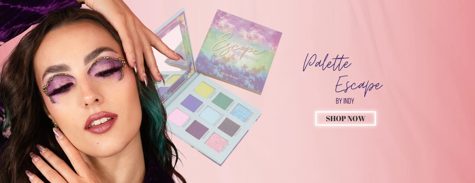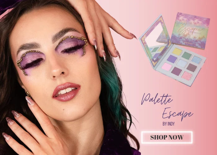 La palette de fards à paupières Escape by Indy se compose de six ombres à paupières mates et trois fards duochromes. Riches en pigments la palette de fard à paupières Escape est très appréciée. Escape est reconnue pour ses fards duochromes ultra pailletés.