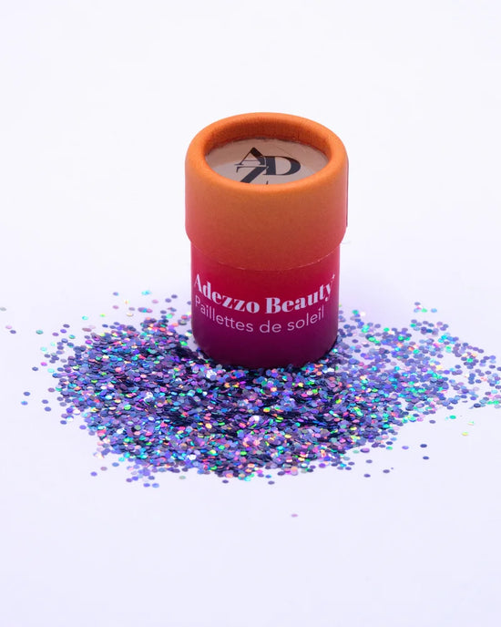 Paillettes biodégradables, 100% sans plastique. Designées en Provence. Pour un maquillage festif : visage, cheveux, corps.