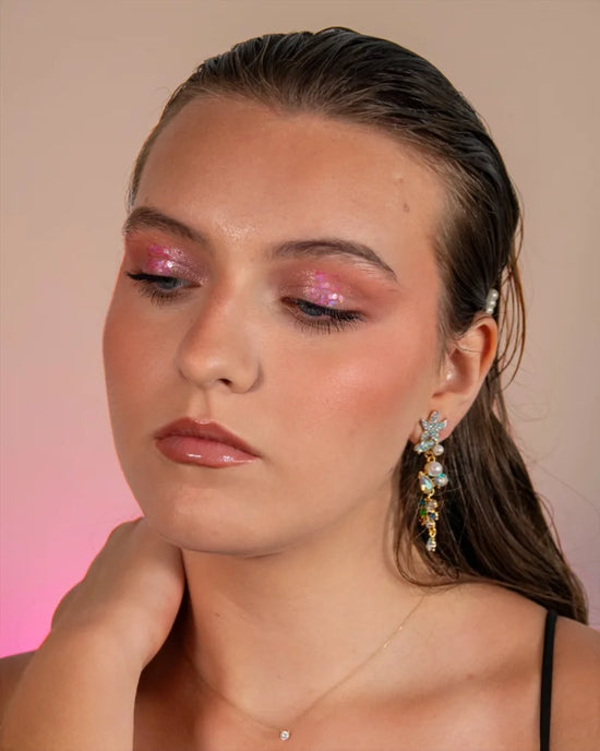TANA, c’est une lumière électrique capturée dans un éclat rosé. Ce mélange de paillettes roses flashy transparentes évoque l’énergie vibrante d’un coucher de soleil sous acide. Subtilement translucides, elles laissent filtrer la lumière pour créer un effet irisé unique, comme une aura glam en suspension sur la peau.