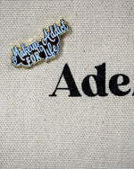 Pins' doré avec inscription Makeup Addict For Life en email bleu Adezzo.